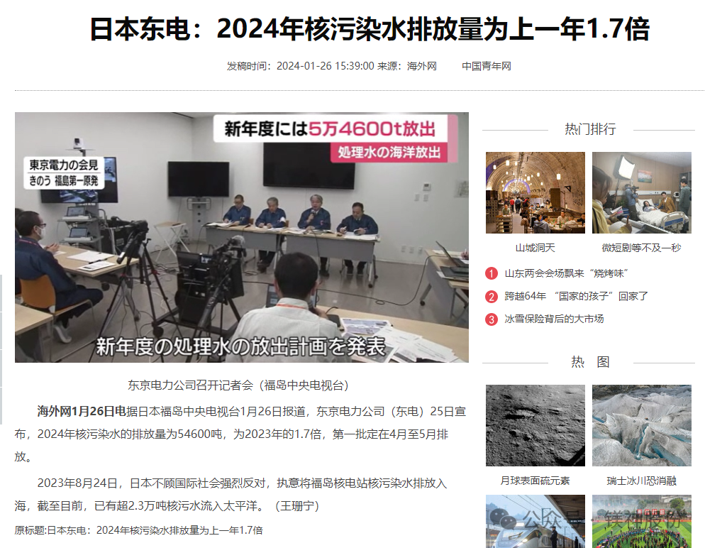 圖為已有超2.3萬(wàn)噸核污水流入太平洋相關(guān)報(bào)道