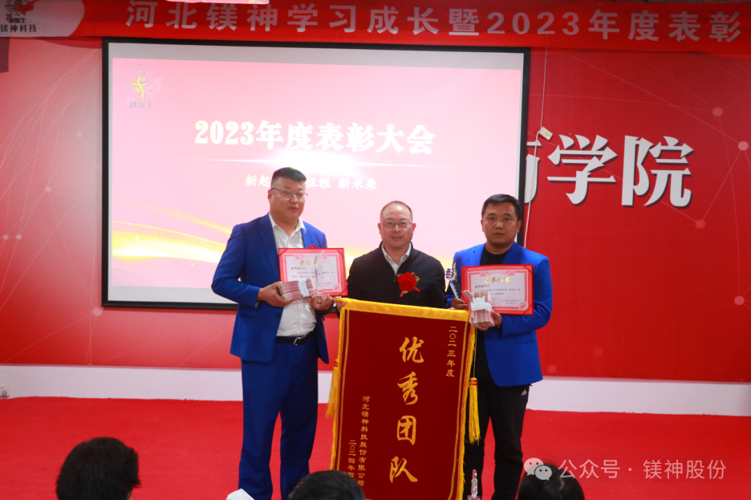 4月19日,河北鎂神科技股份有限公司2023年度表彰大會(huì)圓滿(mǎn)落幕,共發(fā)放獎(jiǎng)勵(lì)600余萬(wàn),其中提成發(fā)放180余萬(wàn),發(fā)放優(yōu)秀員工、干部和團(tuán)隊(duì)獎(jiǎng)金119萬(wàn),專(zhuān)項(xiàng)獎(jiǎng)勵(lì)發(fā)放137萬(wàn),分紅發(fā)放160萬(wàn)。現(xiàn)金560余萬(wàn),另發(fā)放奧迪A6一輛!