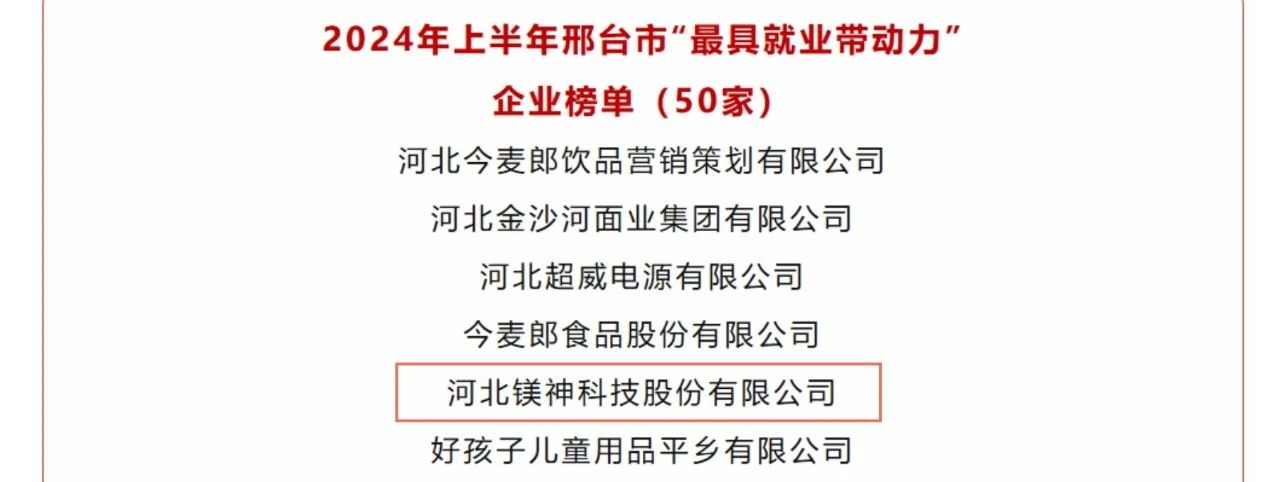 河北鎂神科技股份有限公司榮譽(yù)上榜